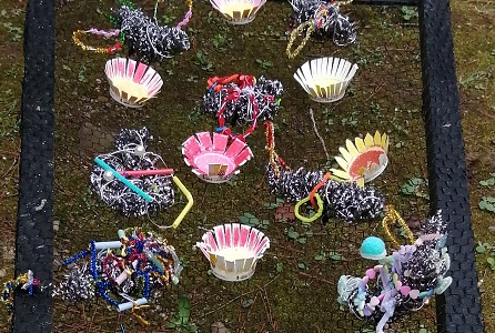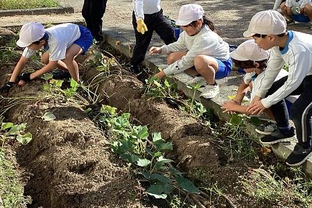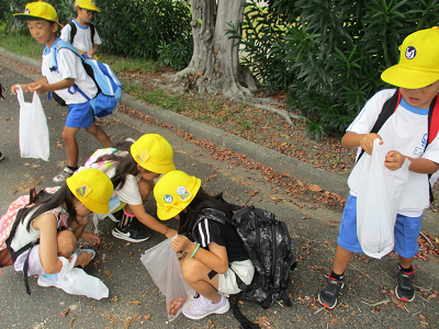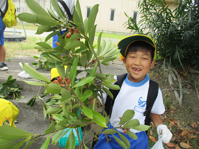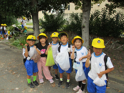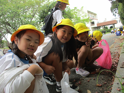 1~3年生は、学校内外のごみや草、落ち葉などを拾います
