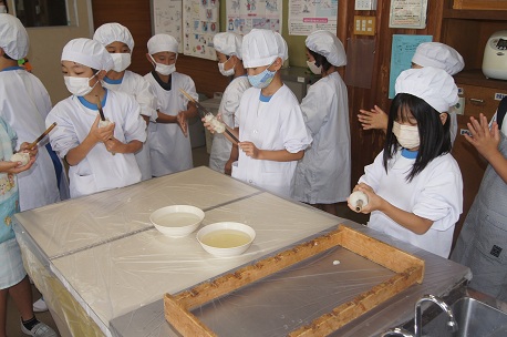 昨日、市内の小中学校から希望する先生方が集まって、研究会を開きました。本校の職員を合わせると、約70名。6年生の「比とその利用」での学習を生かして、あるものを1年生にプレゼントするそうです。そのために一生懸命授業に取り組む様子を見てもらいました。