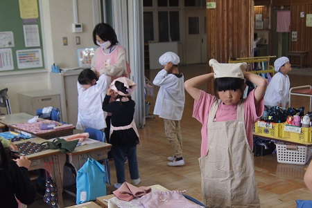 竹とんぼ・竹ぽっくり・ヨーヨー・けん玉・お手玉・あやとり・おはじき・こま・はねつきを体験しました。子どもたちは、教えていただいた遊びの中から、極めたい遊びを追究していきます。