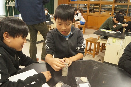 自然史博物館の学芸員さんが来校し、6年生理科「地層」の学習のために、特別講座を開いてくださいました。