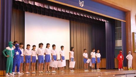 今日のわくわく集会は、美化委員会のみなさんが、学校を美しくするための清掃の仕方やポイントを、わかりやすく教えてくれました。