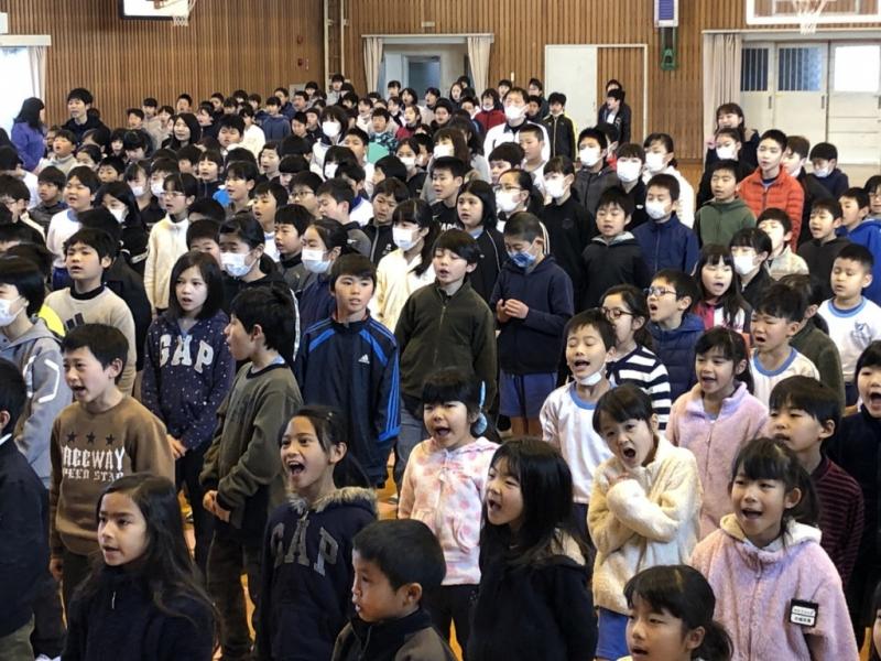 今日のわくわく集会は、歌声集会を行いました。3月6日(水)に予定している「6年生を送る会」で歌う歌の練習です。今月の歌は、ゆずの「またあえる日まで」です。「またあえる日まで・・・」と歌うところを6年生と交互に歌います。きっと思い出に残るすばらしい会になることでしょう。
