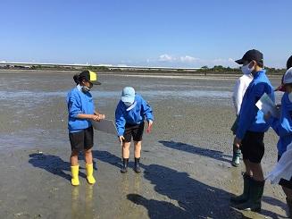 2年生がウォークラリー&クイズで干潟のことを教えてくれました。