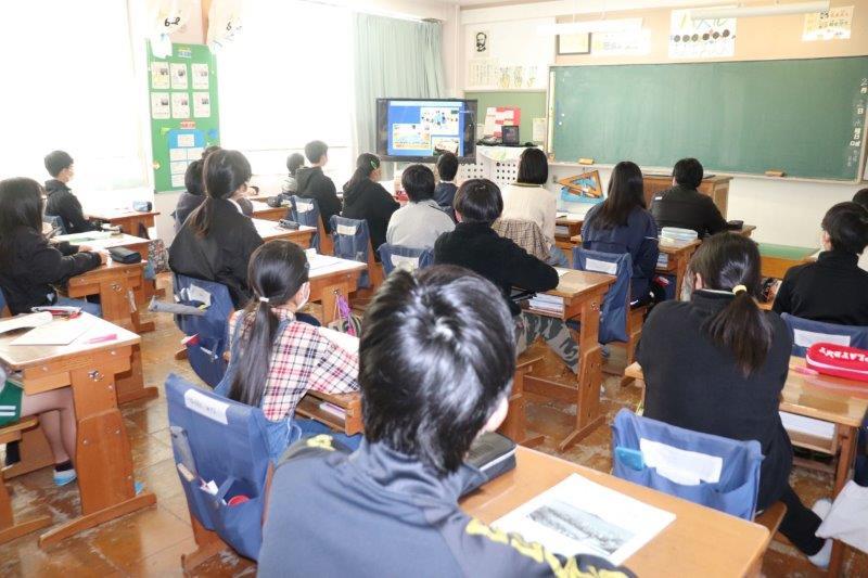 章南中学校と2つの小学校をオンラインでつなぎ,実施いたしました。