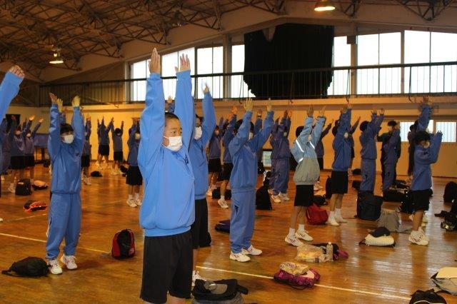 少年自然の家でお世話になる方々に挨拶をしました。「全力」が合言葉の自然体験学習。大きな声で心を込めて挨拶できました。