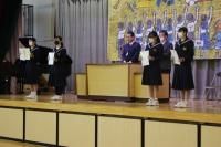 修了式の前に,運動面,文化面などで優秀な成績を収めた生徒の表彰を行いました。