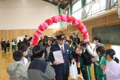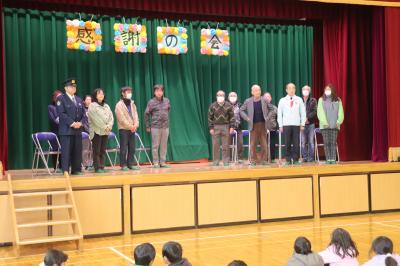 朝礼の中で,2学期に取り組んだ理科スケッチ展や夏休みに取り組んだ作品で優秀な成績を収めた子の表彰を行いました。