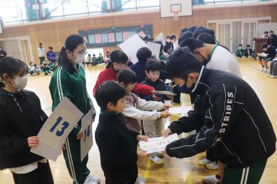 前日の寒さも和らぎ,暖かな晴天のもと,長距離走大会が行われました。これまでランランタイムや体育の時間に走り,走力・体力・気力を鍛えてきた子どもたちが,それぞれの目標を達成するために一生懸命走りました。