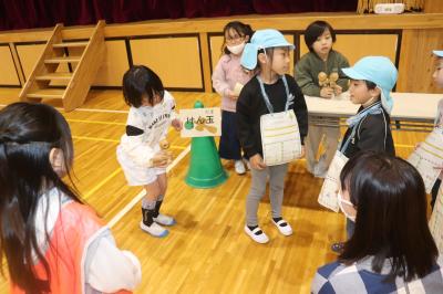杉山保育園の年長さんを招待して「わくわくランド~昔遊びゲーム屋さん~」を開きました。