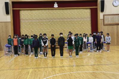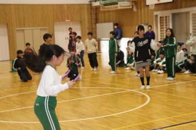 ふれあいタイムに「たてわり班対抗長なわとび大会」が行われました。度重なる学級閉鎖で,練習がままならない状況ではありましたが,たてわり班ごとに自主練習をがんばってきた成果を発揮しました。