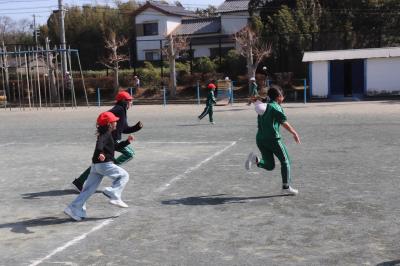 総合的な学習の時間による「卒業プロジェクト」の取り組みの1つで,6年生が企画した全校遊びを行いました。