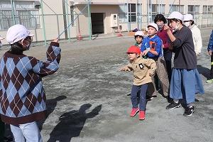 子どもたちは,畑の土から出ているサツマイモのつるをたよりに,