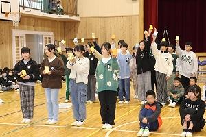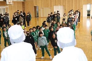 この日の給食には次郎柿が出され、出前授業でのお話を思い出しながら秋の味覚を味わいました。