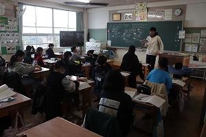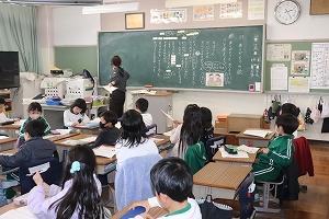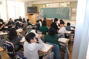 とよはし産学校給食の実施に伴う出前授業で、JAの皆さんから豊橋名産の次郎柿について学びました。栽培の仕方、味などに子どもたちも興味津々、多くの質問がとびかいました。