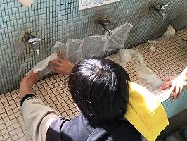 1学期に植えたサツマイモが収穫の時期を迎え,