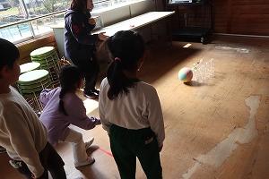 子どもたちが各々作ったアーチェリーの矢を,さらに遠くに飛ばすにはどうしたらよいか話し合い,実際に飛ばしてみました。