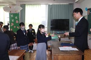 全校朝礼の中で,後期学級委員・運営委員および各委員会委員長の認証式を行いました。