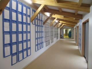 防災展示の奥の通路には競書大会の作品(全校児童)も展示されています