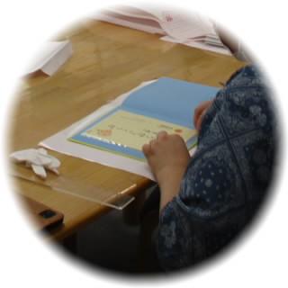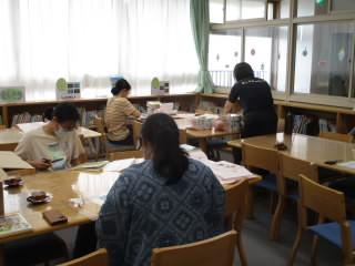 今日は、図書ボランティアさんの方々がと図書室で、本のブッカーかけ(新しい本の表紙にフィルムを貼る)作業をしてくださいました。