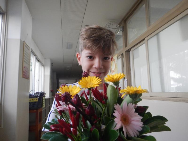 担任の先生が活けてくださったお花,すてき!