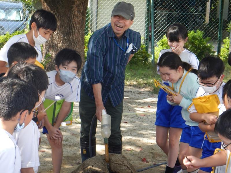 5年生理科「流れる水のはたらき」の実験場を作っていたのでした。