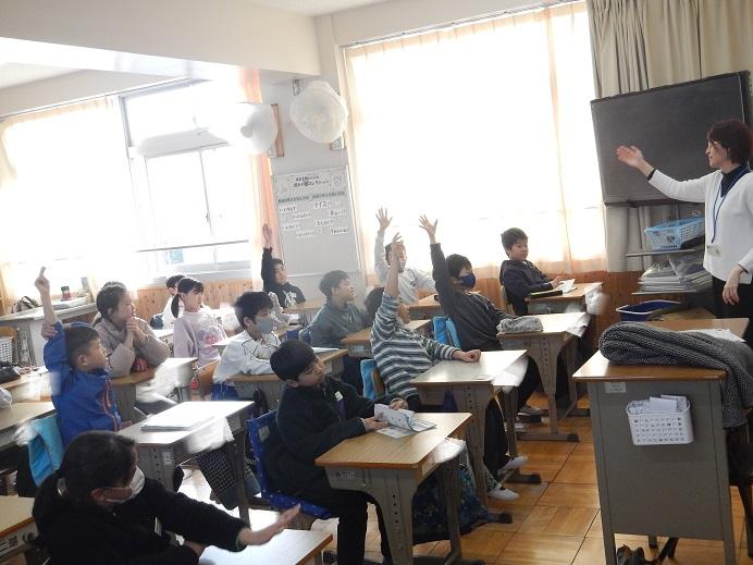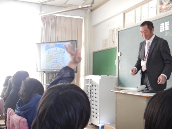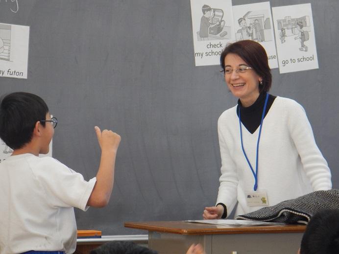 4年生の教室に,英語の先生がおみえです。