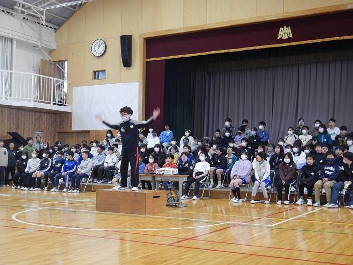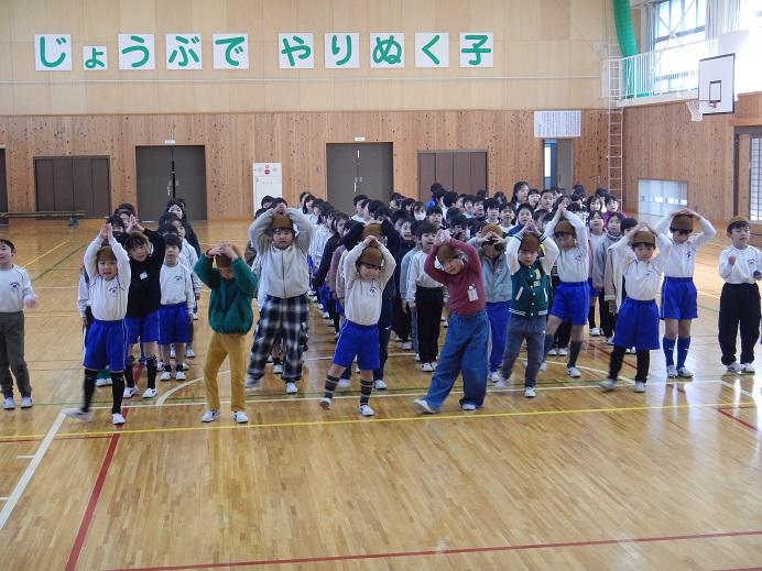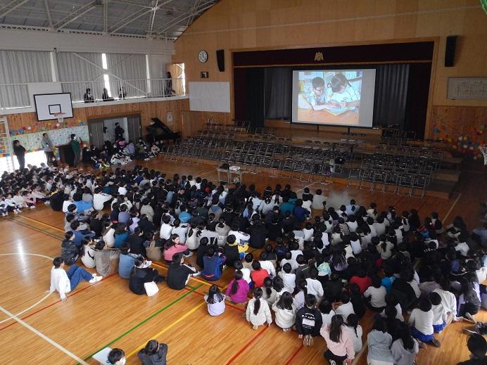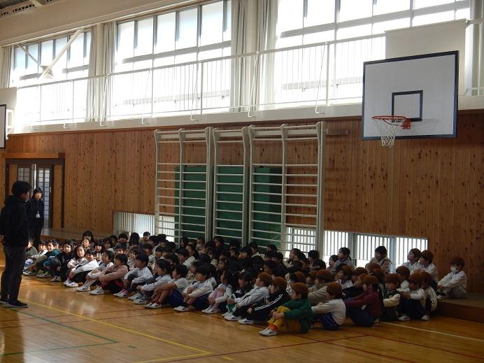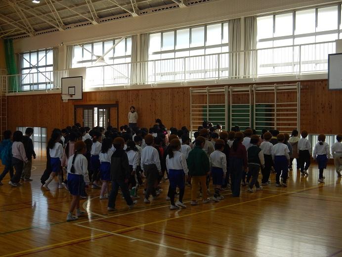 1年生が体育館にやって来ました。