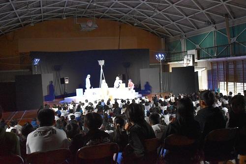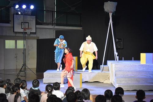 体育館で、「劇団うりんこ」さんが『へんてこ鳥と、さかいめの3人』を上演してくれました。午前は1・3・5年生、午後は2・4・6年生が参観しました。子供たちは、目を輝かせて、楽しそうに見ていました。今度の学習発表会に生かせるといいです。