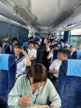 バスの中では、それぞれのクラスで決めたお気に入りの映画を見ています。