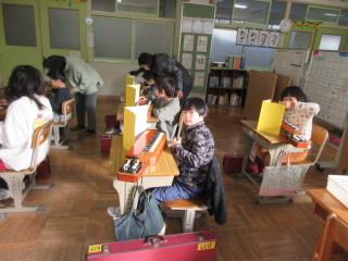 ひまわり学級の子どもたちは,毎年,地域の方に大正琴を教えていただいています。