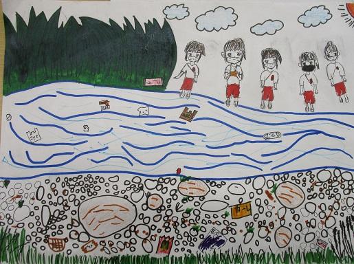 私たちは,3枚目の絵のような川になってほしいと願っています。そのために,神田川をよごさないようにしていきたいです。