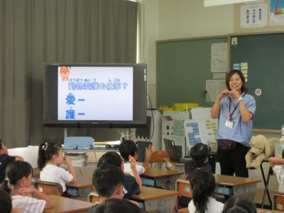 3年生の教室で養護教諭が子どもたちに語りかけています。