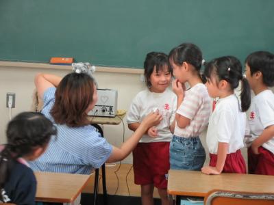 中部電力のお兄さんから「発電所から送られてきた強い電気の電圧を,安全に使えるように徐々に下げて,みんなの家に届けます」と説明を受けました。そのあとも,施設についてや働く人の仕事についてたくさん質問できました。