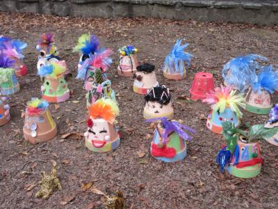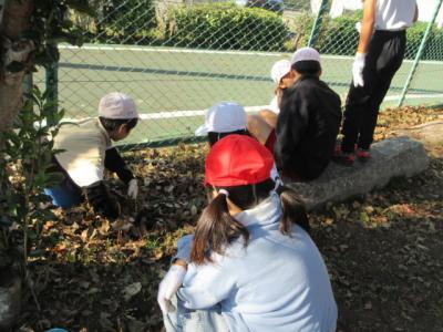 落ち葉を拾う子,草を抜く子,運動会に備えて石を拾う子