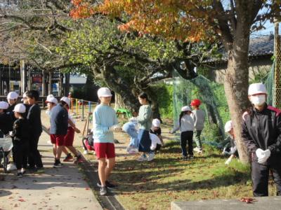 低学年の子に,ゴミの分別の仕方を教えてあげたり,なかなか抜けない草を抜くのを手伝ったりしている高学年の子の姿を見ることができました。