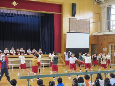 みんなで楽しく「エビカニクス」などのダンスを踊りました。