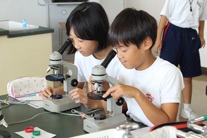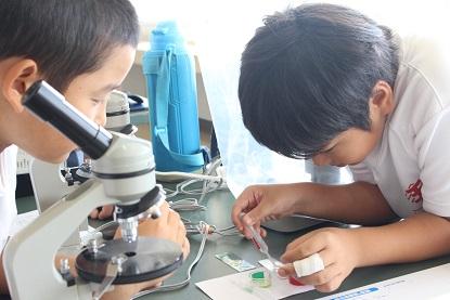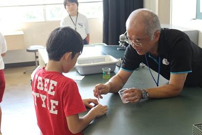 小さな生き物をしっかり観察しています!どんな生き物がみえたかな?