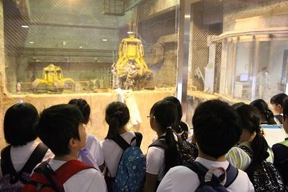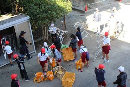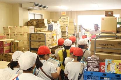 防災倉庫の中も見学しました。学校のどこにあるか、みなさんは知っていますか?