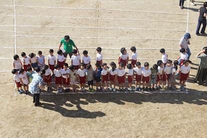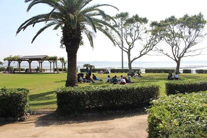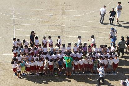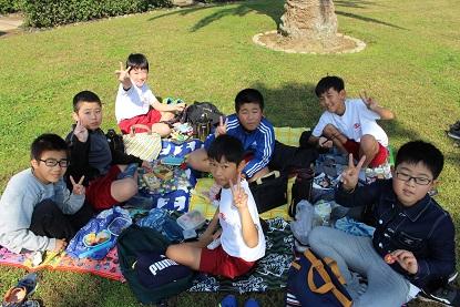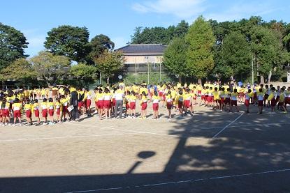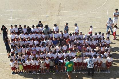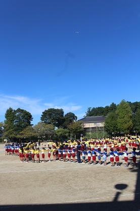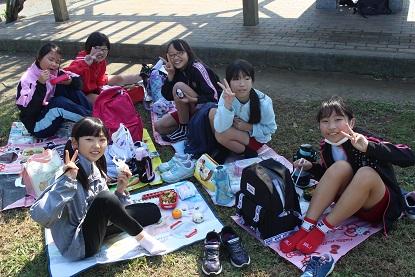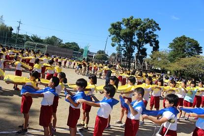 今日は、玉川えがおの日です。運動場で、全校のみんなで、1年生を迎える会を行い、石巻運動公園へたてわり遠足に行きました。