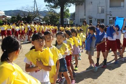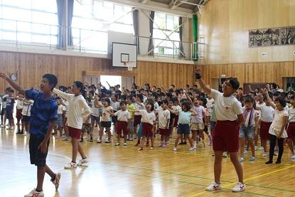 校長先生からは、「熱中症に気をつけよう」「コロナウイルスに気をつけよう」「交通安全に気をつけよう」「三つのことに気をつけて、夏休みを満喫しましょう」とお話がありました。
