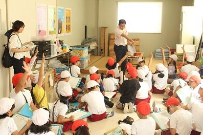 クイズを取り入れながらのお話に子どもたちは興味津々でした。