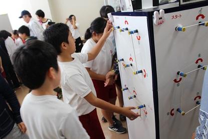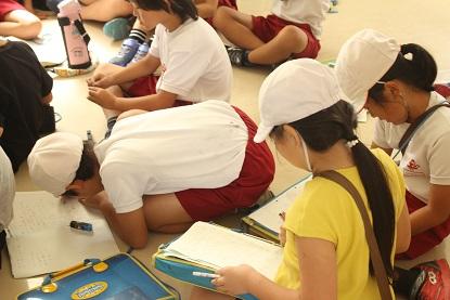 「災害が起こったとき、だれも作り方を知らないんだから、みんなで協力してつくって!」という話に、友達と協力する5年生の子どもたちの表情は真剣そのものでした。