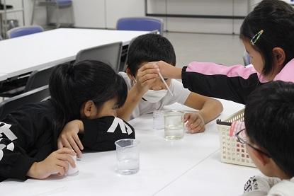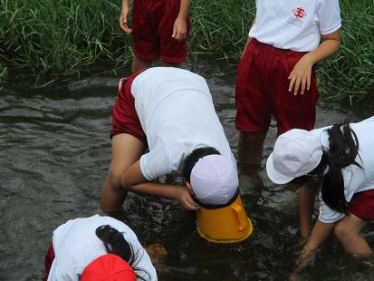 実際の川の水も違いを比べました。とる場所によって、水の色の違いに気づきましたね。
