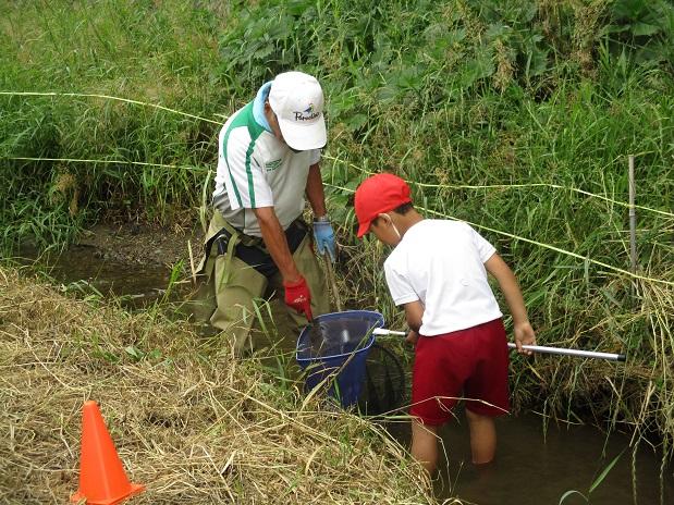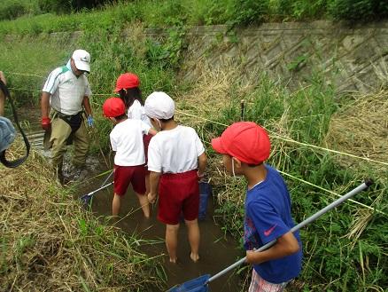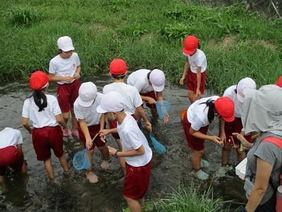 「自分たちの住む玉川校区を流れる神田川とその上流の嵩山川では、水質が違うのか?生き物は違うのか?」という子どもたちの疑問から嵩山川に行くことになりました。