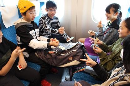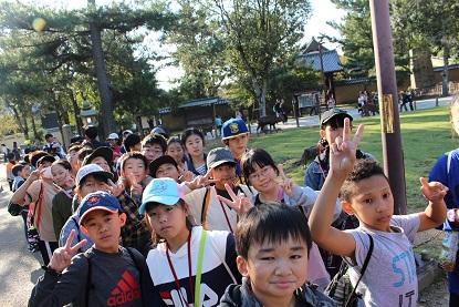 嵩山につくと、嵩山小の4年生がバス停で迎えてくれました。嵩山小のみなさん、ありがとうございました。
