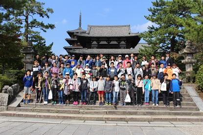 嵩山川をバックにみんなで記念撮影。充実した学習になったようです!