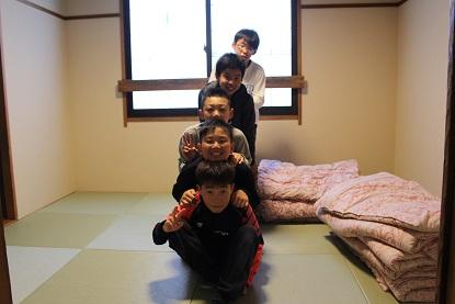完成です。居住スペースの中で、男女にわかれて、寝転んでみました。