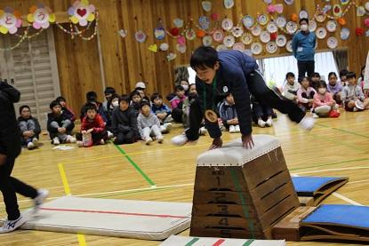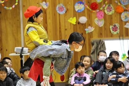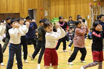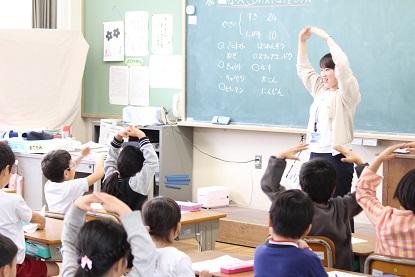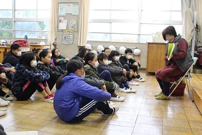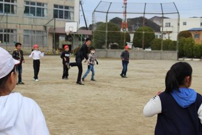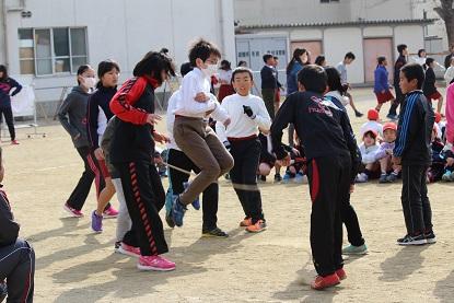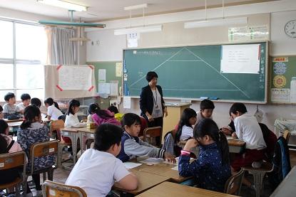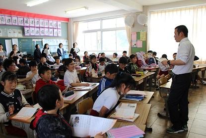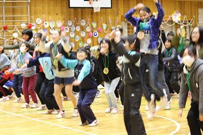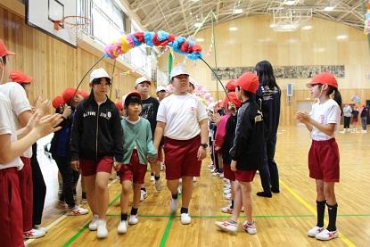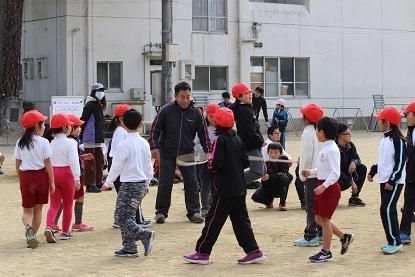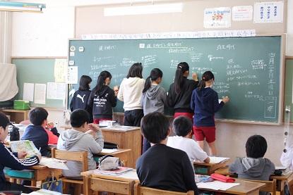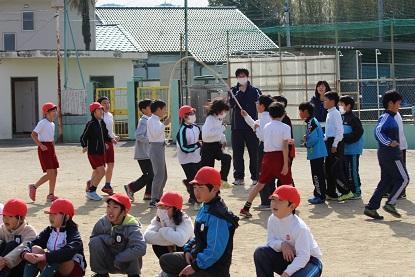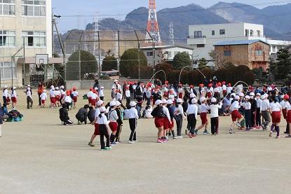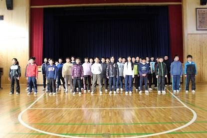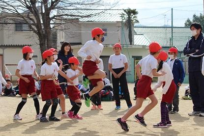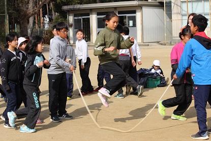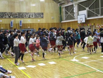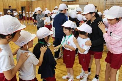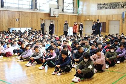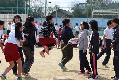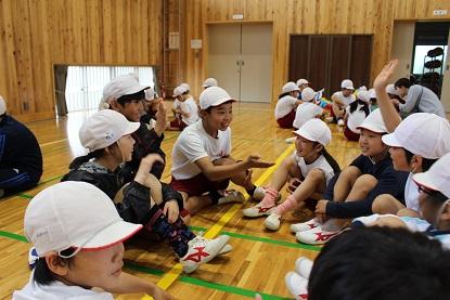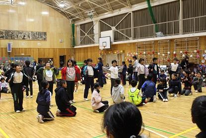今日は、嵩山小の5年生と6年生が玉川小に来て、体育と音楽の授業をしました。