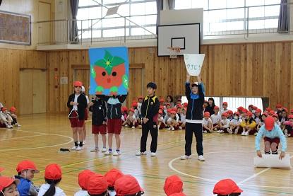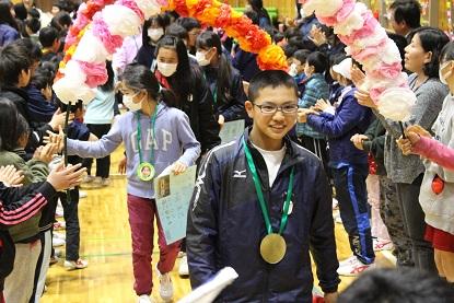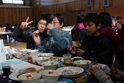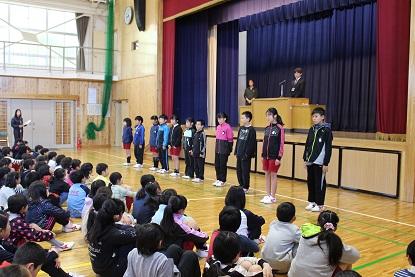 そこで、給食の時間に放送で激励会をすることにしたのです。