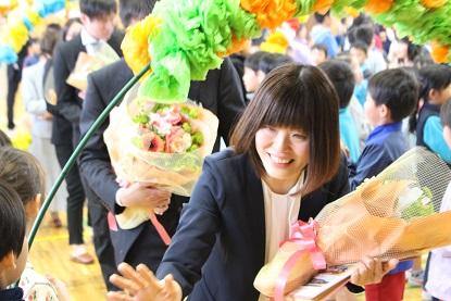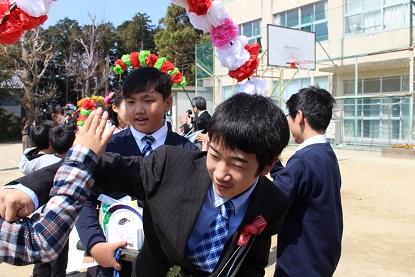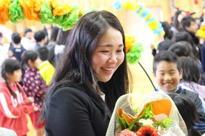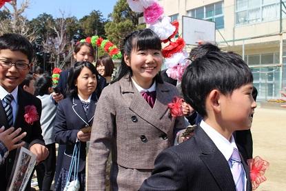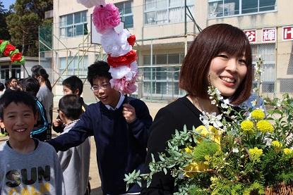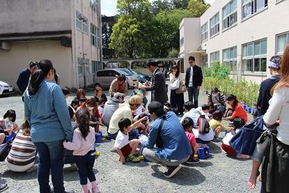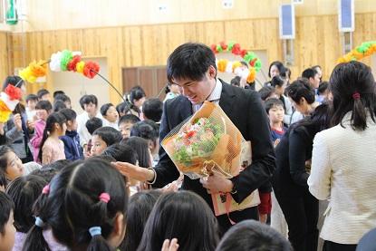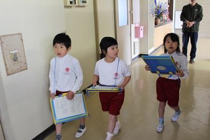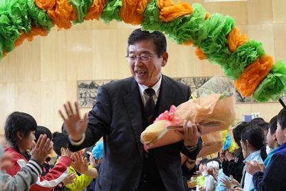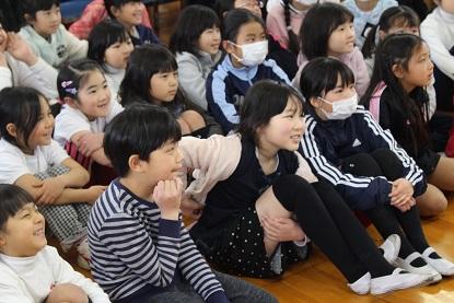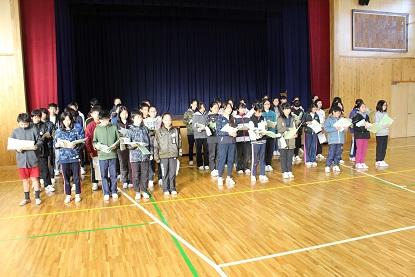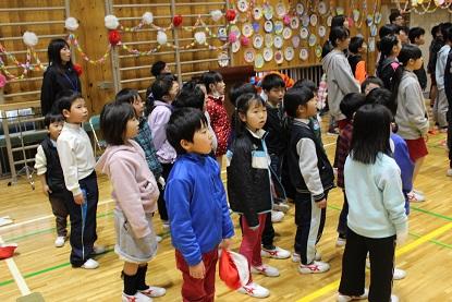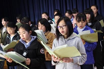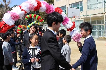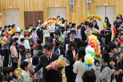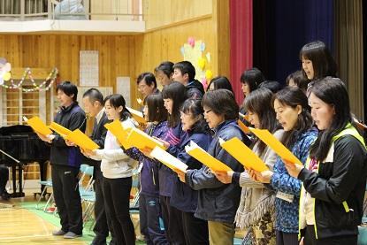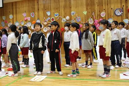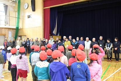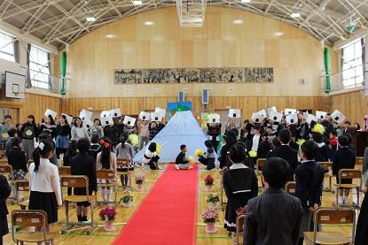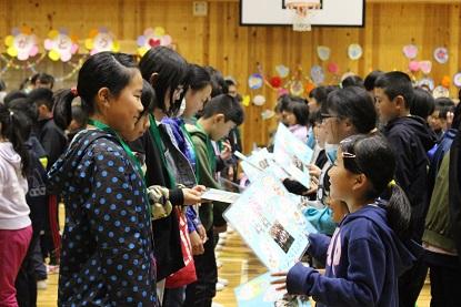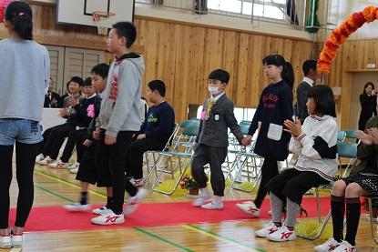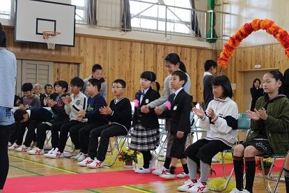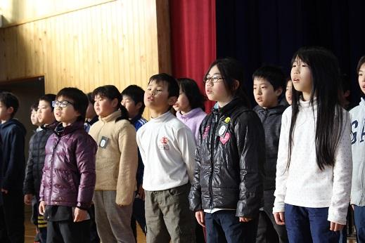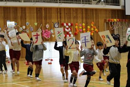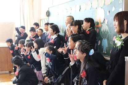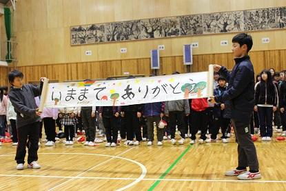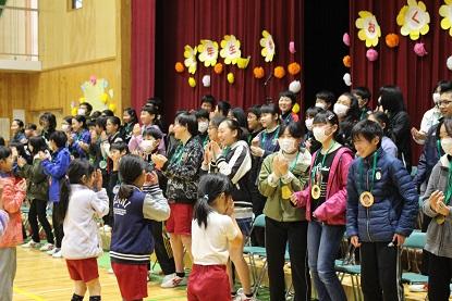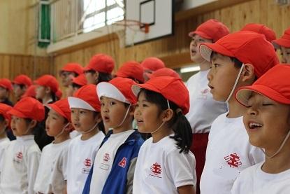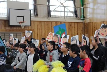 北校舎の子どもたちは、6年生に向かって声をあげていました!!